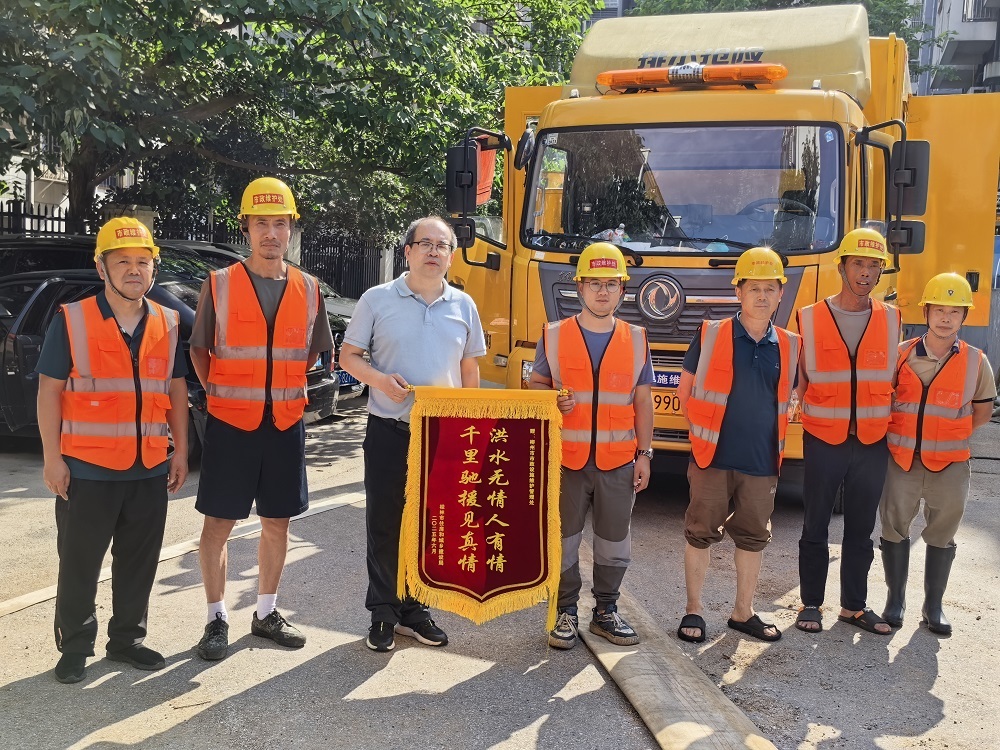 锦旗上写的是:“洪水无情人有情,千里驰援见真情”。此次排涝抢险工作,是对我处应急能力的又一次实战检验,响应迅速、多方联动。也是对市政精神的又一帧生动写照,甘于奉献、自强不息。目前,全区处于雨季汛期,市政工作人员严格执行值班值守制度,密切关注雨情、水情变化,严阵以待应对持续强降雨天气,全面筑牢防汛安全屏障。