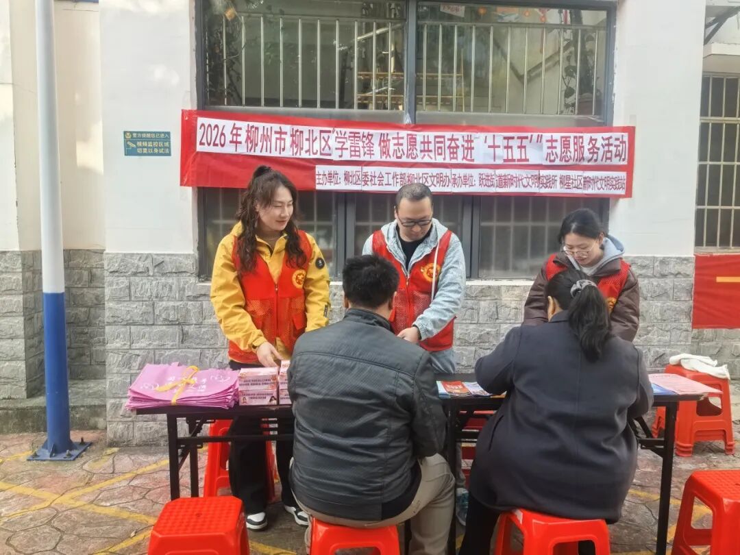 春风送暖,万物复苏。为大力弘扬“奉献、友爱、互助、进步”的志愿服务精神,引导居民共建和谐社区,在第63个学雷锋纪念日到来之际,我处组织志愿者积极参与了柳北区柳星社区开展的“学雷锋 做志愿 共同奋进‘十五五’”志愿服务活动。